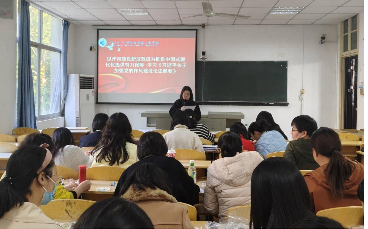 随后,纪检委员温偲睿领学了《习近平谈治国理政》第五卷中关于一体推进教育科技人才事业发展的相关内容,并带领大家学习了《习近平关于加强党的作风建设论述摘编》,以作风建设新成效为推进中国式现代化提供有力保障。温偲睿强调,全体教师要深刻领会习近平总书记关于作风建设的重要论述,将廉洁教育与日常教学工作相结合,以身作则,为学生树立良好的榜样。