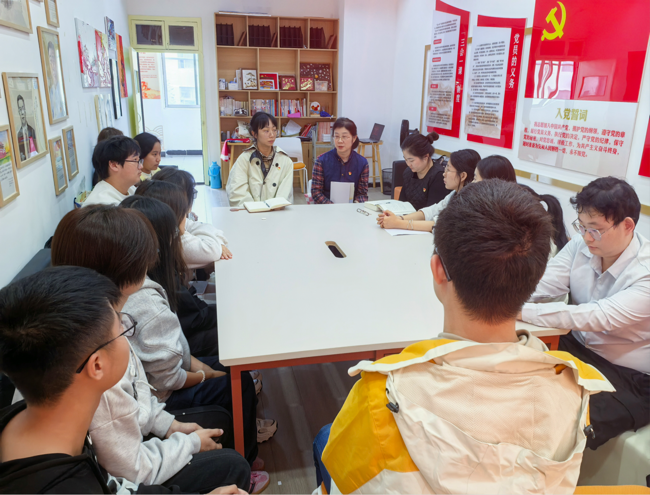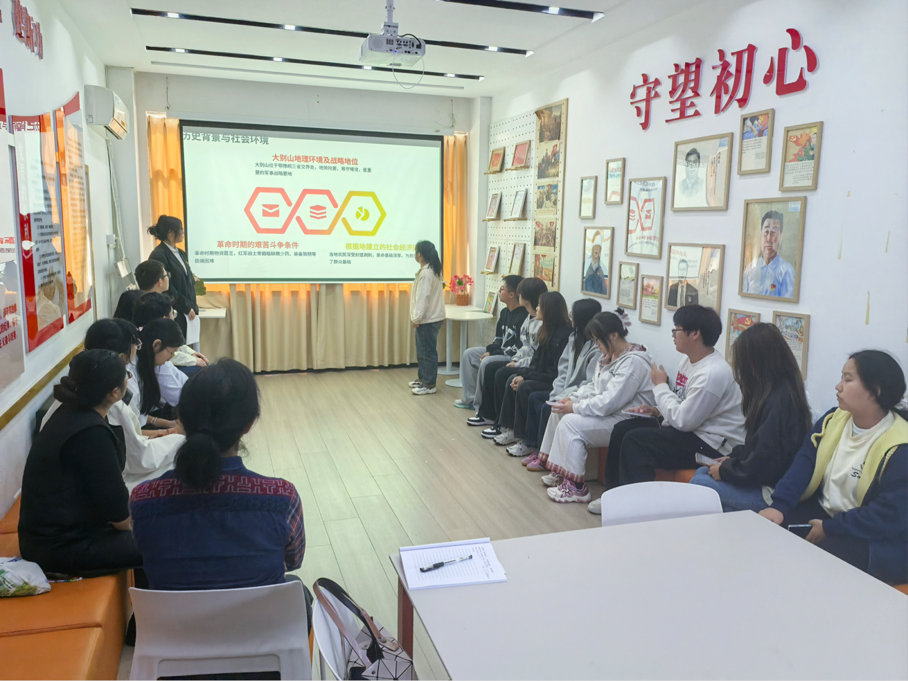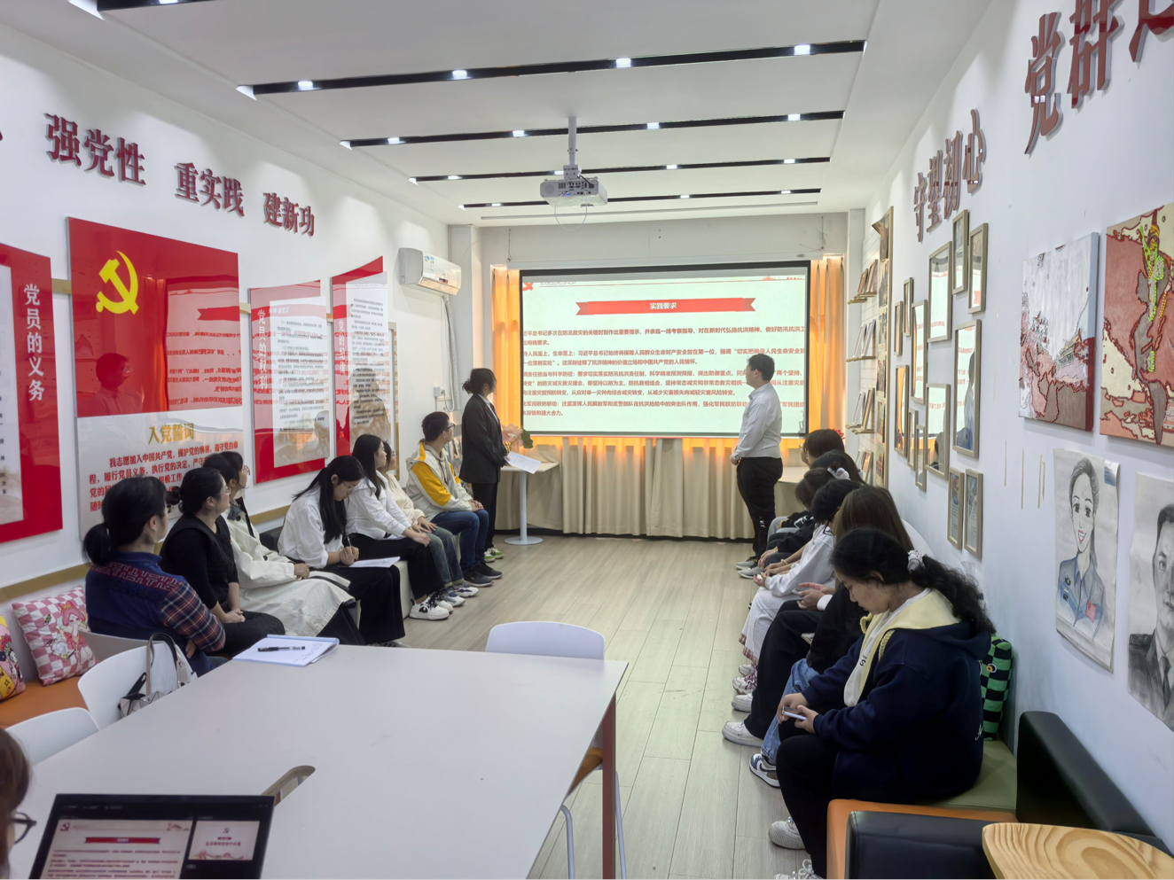 为引导青年党员坚定听党话、跟党走的政治自觉,在学思践悟中凝聚奋进力量,争做新时代有为青年。外语与文法学院第三党支部在3403党员活动中心组织开展了“赓续红色血脉,激扬青春担当”特色党日活动。 (一)活动主题 赓续红色血脉,激扬青春担当 (二)参与人员 组织员张蕾,外语文法学院党总支副书记郭咪咪,第三支部支部书记尹珊,第三支部党员代表,25级学生代表。 (三)活动纪实 为引导青年党员坚定理想信念、传承红色基因、勇担时代使命,2025年11月5日,外语与文法学院第三党支部在3403党员活动中心组织开展特色党日活动。组织员张蕾、党支部副书记郭咪咪、支部书记尹珊出席,支部党员代表及2025级新生代表参加。 活动在庄严的国歌声中拉开帷幕,学生党员谢雨晗带领全体党员重温入党誓词,铿锵有力的誓词增强了组织凝聚力,激发了敢于担当、砥砺奋进的精神力量,推动了党员将誓言内化于心、外化于行。 全体人员集体观看理论宣讲视频《峡江上的传承》,“语”路同行理论宣讲团党员及入党积极分子,在实践中感悟革命先辈奋斗历程与共产党人精神血脉。通过社区宣讲、群众帮扶等志愿行动,追寻宜昌三峡红色足迹,将理论学习与服务人民结合,让“志愿红”与“党建红”“传承红”同频共振,以实干诠释信仰传承。 ![]() 学生党员李庆芳领学习近平《治国理政》相关篇章,她结合外语与文法专业特点,深入解读新时代治国理政的核心理念,倡导将理论学习融入专业实践,号召青年党员积极参与各类文体活动和社会实践,发挥先锋模范作用,展现新时代青年的昂扬风貌。 ![]() 在“学习三大精神”专题环节,学生党员孟宇娇、杨瑞、杨依雪分别围绕大别山精神、抗洪精神、抗疫精神进行领学分享。她们以青年视角讲述英雄故事,用“青言青语”阐释精神实质,将伟大精神与现实生活紧密结合,引发在场师生强烈共鸣,进一步激发了青年党员的责任担当。 ![]() ![]() ![]() 活动设置新老生座谈环节,聚焦新生入学初期面临的思想困惑、学业压力与生活适应等问题。新生代表敞开心扉、坦诚交流,老党员结合自身成长经历耐心答疑、倾囊相授,现场气氛热烈而温馨。交流不仅解决了实际问题,更传递了组织的关怀与温暖,坚定了新生的理想信念。 ![]() 组织员张蕾作总结讲话。她充分肯定本次活动形式多样、内容扎实、富有温度,称赞学生党员领学“有深度、有温度”,对老党员用心帮扶新生表示赞赏。她勉励新生要勇于尝试、不惧失败,积极融入大学生活,享受成长过程,在党组织的培养和引领下,努力成长为有理想、敢担当、能吃苦、肯奋斗的新时代青年。 ![]() 1. 强化思想引领,筑牢信仰之基。通过红色教育与理论学习,党员们接受了一次深刻的思想洗礼,进一步坚定了理想信念,增强了历史自觉和使命意识。 2. 增强组织凝聚力,搭建成长平台。新老生面对面交流,既传承了经验,也拉近了距离,有效增强了支部的向心力与归属感,营造了团结奋进的组织氛围。 3. 激发青春担当,凝聚奋进力量。新生代表纷纷表示,将以此次活动为起点,传承红色基因,勇担时代重任,在未来的学习与实践中砥砺成长,让青春在党旗下熠熠生辉。 外语与文法学院第三党支部将持续深化党建品牌建设,创新活动形式,拓展育人路径,以红色精神滋养青年心灵,以组织力量引领青春航向,让信仰之光照亮每一位青年党员的前行之路。 (五)支部介绍 外语与文法学院党总支第三党支部由教师党员和英语、商务英语两个专业学生党员组成,共有 8 名正式党员,12 名预备党员。党支部以标准化党支部建设为基点,坚持“党建示范创建党建质量提升”的工作主线,将基层党建工作与中心工作深度融合,依托英语专业特色,积极创建“思政进课堂”“双语微党课”“珍珠宝贝”“英语角”“红旗颂”理论宣讲团、“语”路同行志愿服务队、“清廉颂”朗诵队等品牌活动。 部分优秀党员代表如下: 尹珊:荣获学院“优秀共产党员”“青年岗位能手”“就业工作先进个人”“优秀班主任”等荣誉称号,获学院辅导员职业技能大赛二等奖。 杨依雪:获评学院“三好学生”“优秀青年志愿者”“优秀学生干部”“优秀学工助理”“优秀共青团干”“暑期社会实践先进个人”等荣誉称号,荣获学院丙等奖学金。 李庆芳:获评学院“优秀学生干部”“三好学生”“优秀共青团干”校级“优秀共青团员”“优秀学工助理”等荣誉称号,曾获学院国家励志奖学金、乙等奖学金、丙等奖学金。 孟宇娇:获评学院“三好学生标兵”“三好学生”“优秀学生干部”“暑期社会实践先进个人”“十佳青年志愿者”“优秀共青团员”“励志先锋”“优秀学工助理”等荣誉称号,曾获学院乙等奖学金、丙等奖学金、国家励志奖学金。