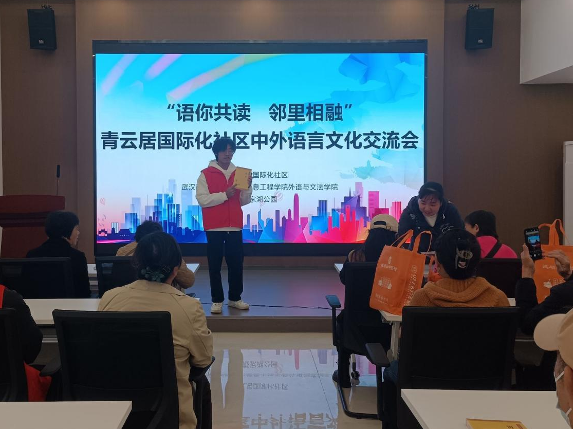 为丰富社区居民精神文化生活,搭建语言交流实践平台,11月11日上午,外语与文法学院珍珠宝贝志愿服务队走进青云居国际化社区,以情景对话分享与读书交流为核心,开展了一场兼具实用性与文化内涵的志愿活动,用专业所长为社区建设注入青春力量。