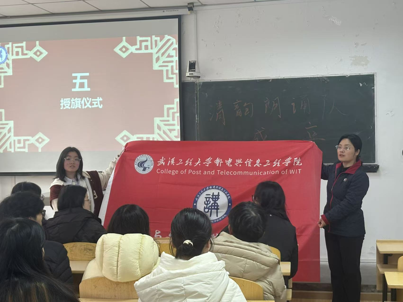 2025年12月31日,外语与文法学院“清韵”朗诵队成立仪式在武昌校区一教1308教室隆重举行。外语与文法学院党组织班子成员、教工党支部书记和纪检委员、辅导员及朗诵队全体成员参加。仪式由24法学01班杨钦清主持。