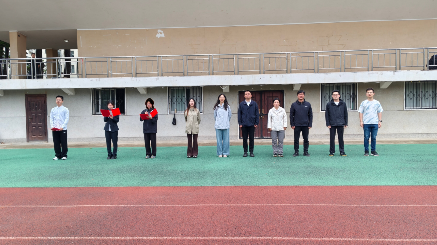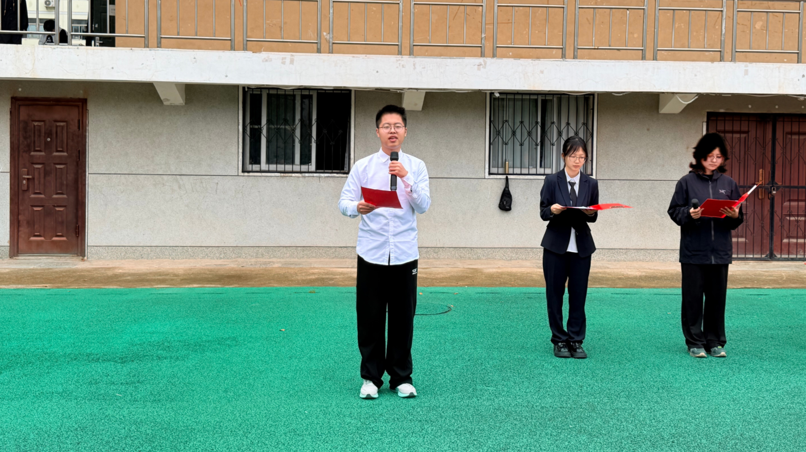 清晨七时,晨光熹微,升旗仪式在庄严隆重的氛围中拉开帷幕 。国旗班成员昂首挺胸,迈着整齐划一、铿锵有力的步伐,护送五星红旗走向升旗台 。伴随着《义勇军进行曲》激昂高亢的旋律,鲜艳的五星红旗冉冉升起、迎风飘扬,全体师生肃立行礼,共唱国歌。