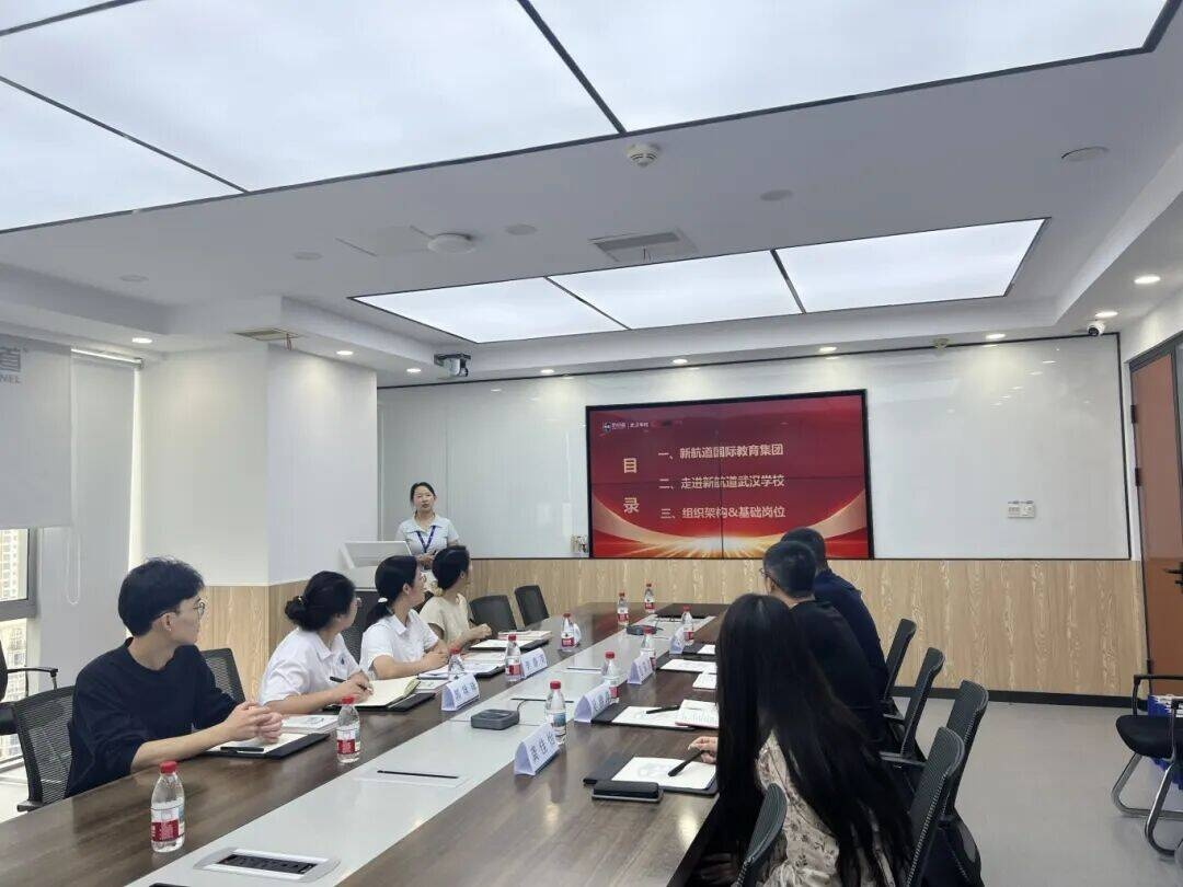 2025年9月19日下午,外语与文法学院党总支书记、院长李春英,副书记郭咪咪,就业辅导员徐特及学生代表一行,前往新航道武汉学校总部,开展访企拓岗专项交流活动。 活动伊始,学院一行在新航道武汉学校领导的热情接待下,参观了总部的教学与办公区域,详细了解了新航道武汉学校的运营模式、教学特色及企业文化,并合影留念。 ![]() ![]() ![]() ![]()