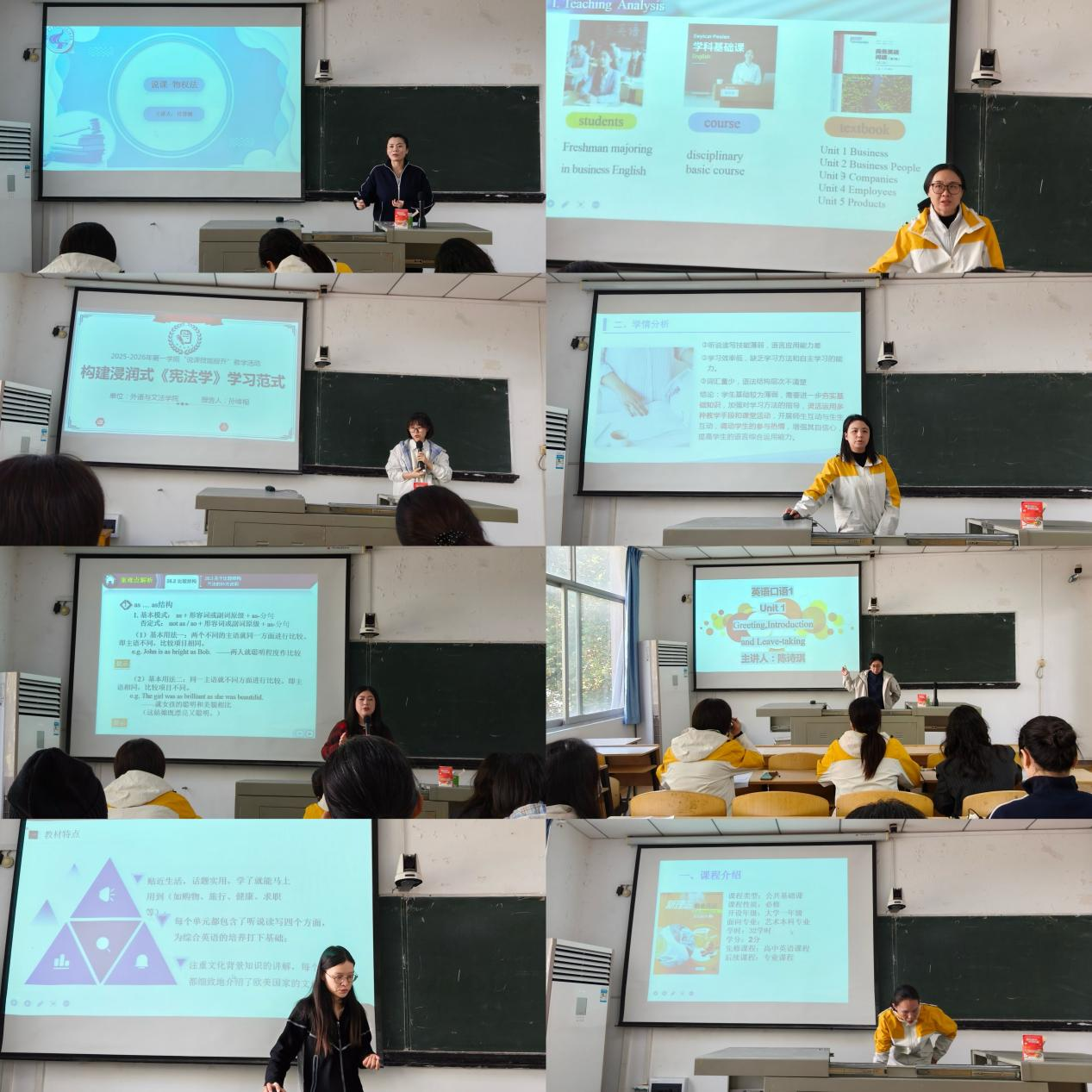 为进一步提升学院教师的教学水平和说课技能,外语与文法学院于11月13日上午在1308教室开展2025年秋季学期“说课技能提升”活动。文法教研室、英语专业教研室和公共英语教研室共八位教师进行说课展示,潘凡、胡慧、涂晟楠三位副教授担任评委。
