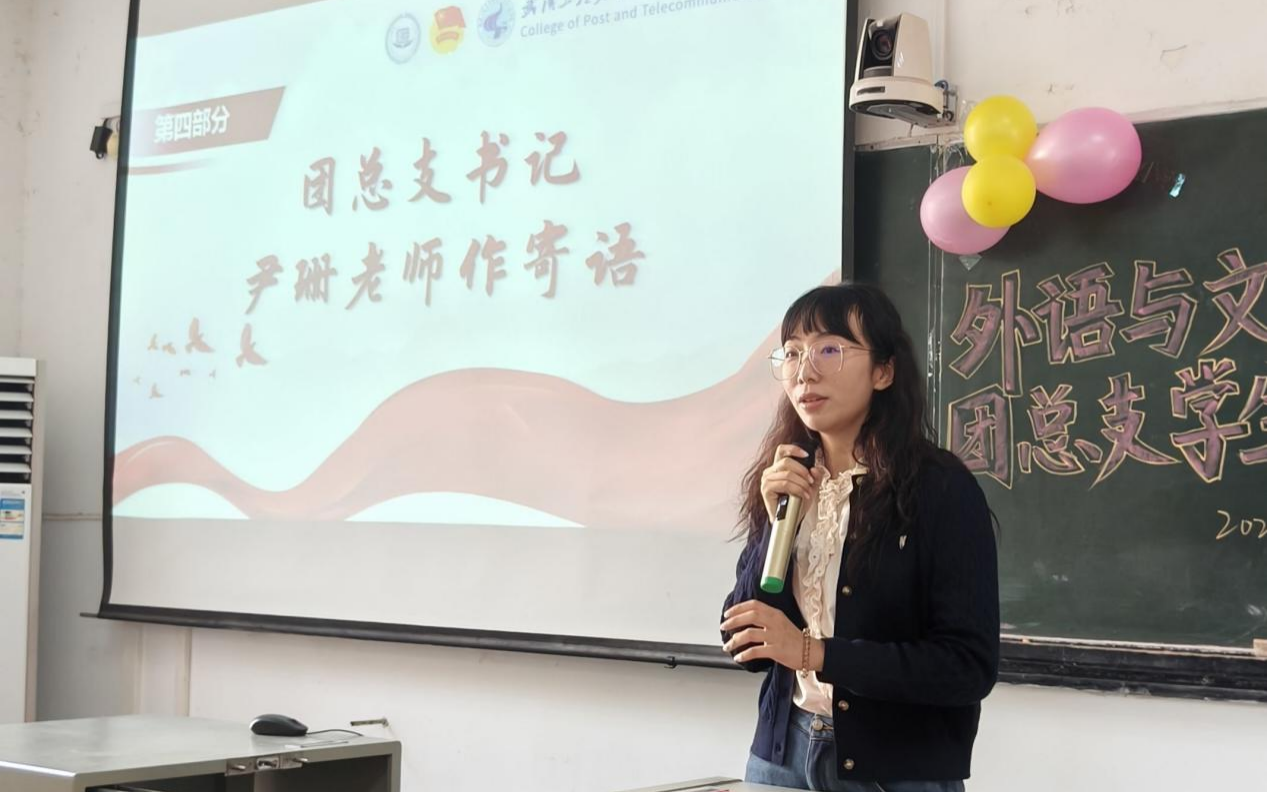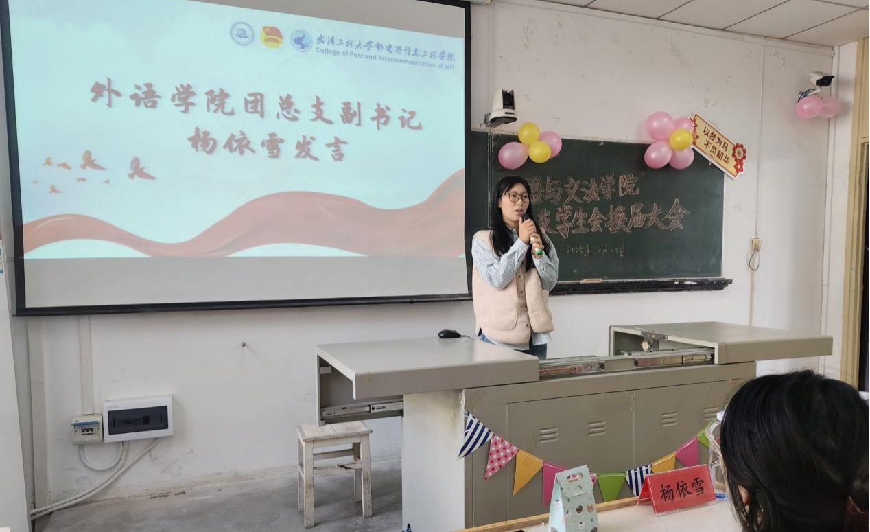 首先,第五届团总支学生会副书记杨依雪上台发言。她结合自身任职经历,分享工作经验与成长感悟,鼓励新一届成员勇于担当、主动探索,在服务同学的实践中锤炼过硬本领、绽放青春风采。