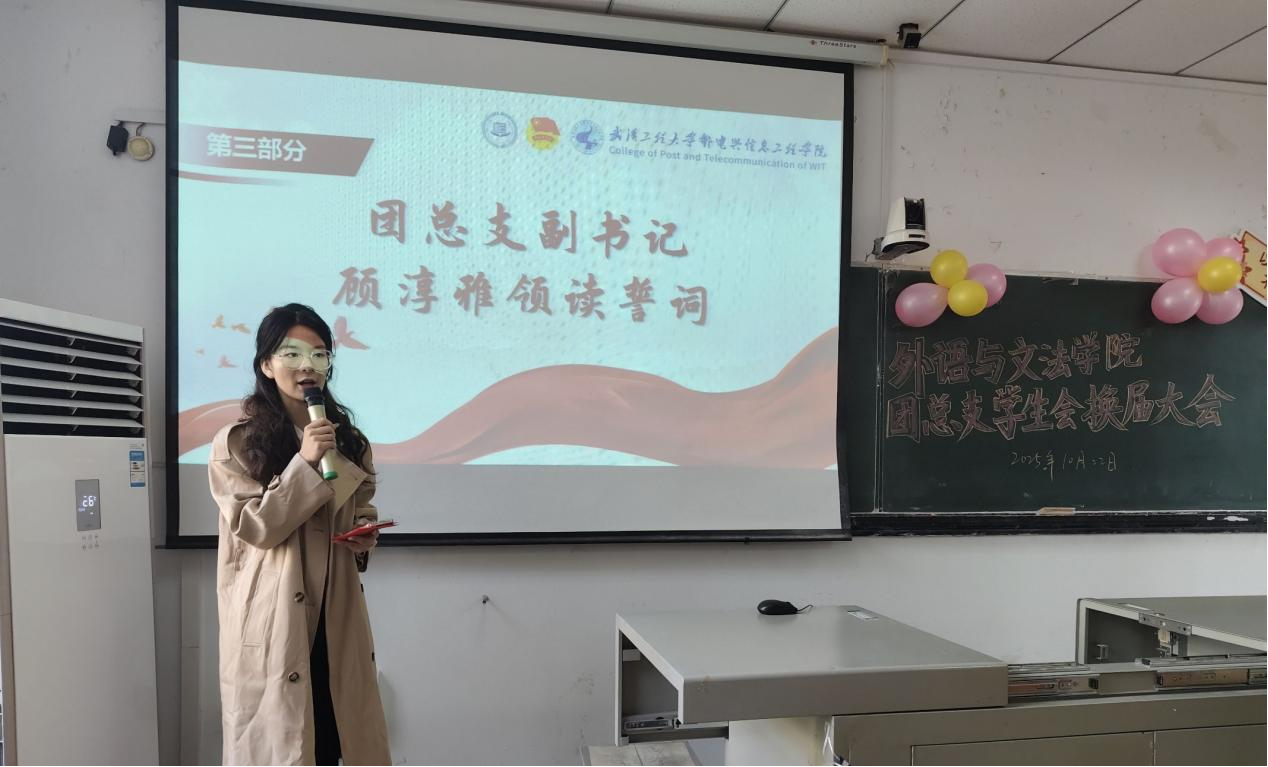 在庄重的氛围中,团总支副书记顾淳雅带领全体参会成员进行宣誓。铿锵有力的誓言,彰显了全体成员坚守服务初心、投身学生会工作的坚定信念。