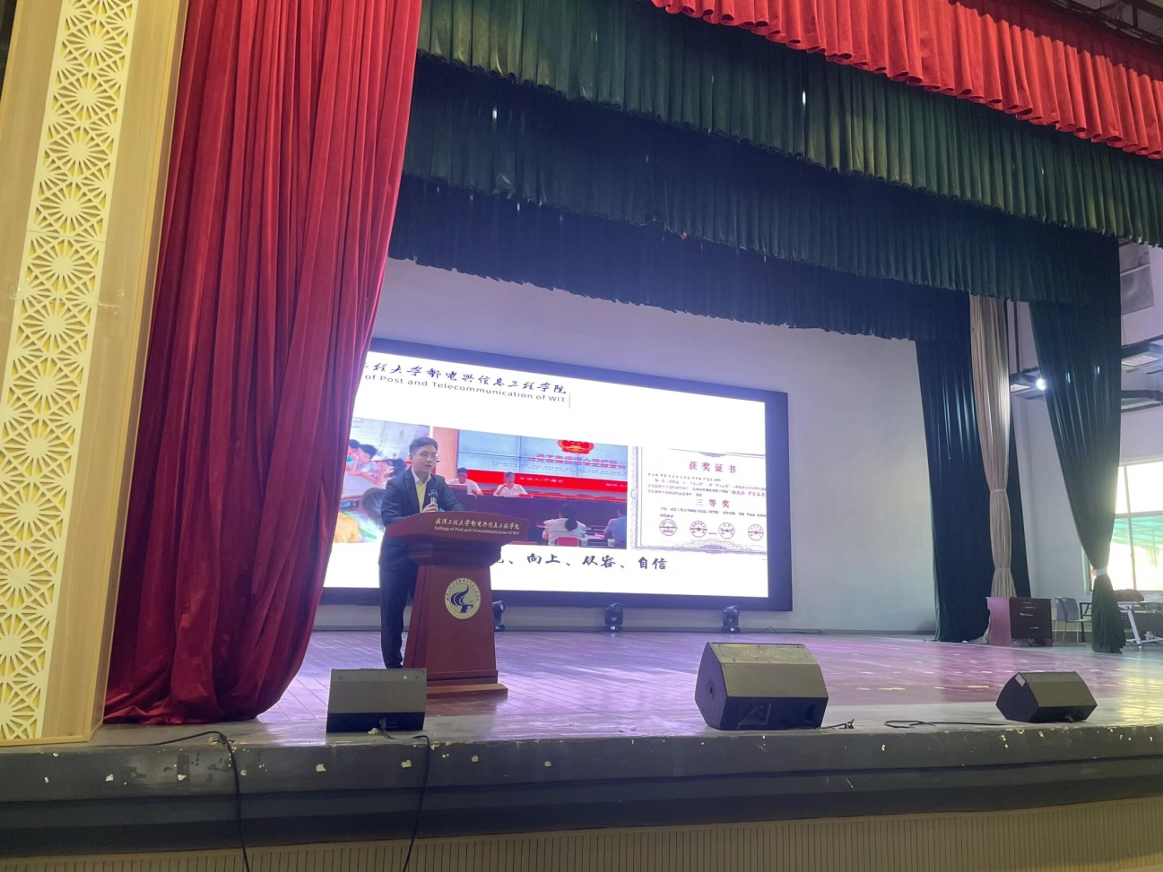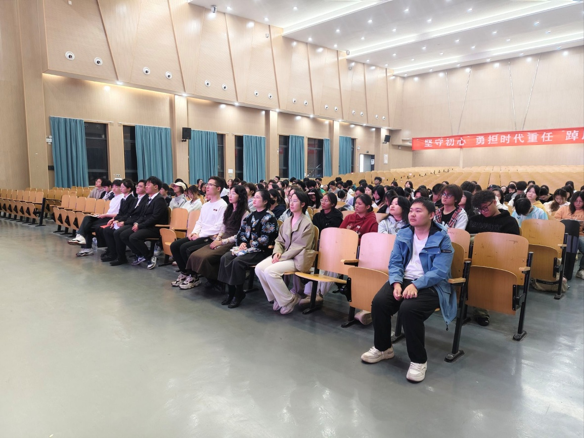 为充分发挥朋辈榜样的示范引领作用,搭建优秀学子与2025级新生的交流桥梁,进一步营造勤学善思、乐于奉献、勇于拼搏的良好学风院风。2025年10月29日下午,外语与文法学院在大礼堂举行“朋辈引领聚星火 薪火相传逐梦行”分享会。外语与文法学院党总支副书记郭咪咪、团总支书记尹珊、辅导员徐特、徐晨,以及全体2025级新生参加分享会。分享会由2024商务英语02班何梦婷主持。