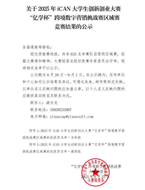 ![]() ![]() ![]() 作为面向全国高校的重要学科竞赛,iCAN 大学生创新创业大赛 “亿学杯” 跨境数字营销挑战赛始终紧跟国家数字化发展战略步伐,致力于推动数字技术与高等教育的深度融合,为高校学子搭建了提升数字营销领域创新能力与实践能力的优质平台。 此次我院学子在比赛中获奖,不仅充分彰显了我校外语与文法学院在跨学科融合教育及创新创业教育领域积极探索的实践成果,更体现了学院在复合型、应用型人才培养方面的有效实践。未来,学院将继续深化教育教学改革,进一步加强跨学科人才培养力度,为培养更多适应全球数字经济发展需求的优秀人才奠定坚实基础。