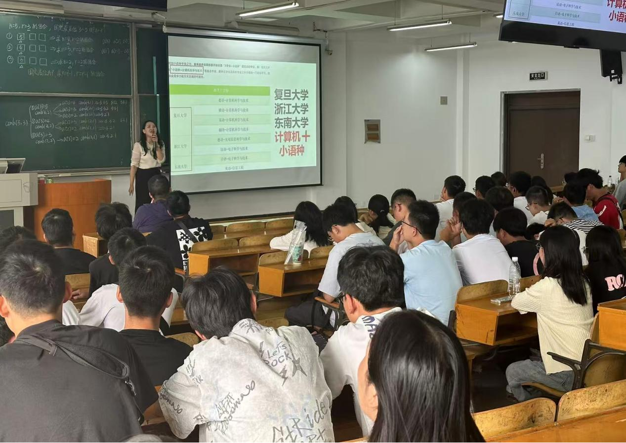 随后,易芙蓉老师聚焦学院各专业学子发展需求,阐述“小语种+专业”在就业、考研中的独特优势,强调教育部鼓励高校培养“专业+小语种”复合型人才的导向,呼吁同学们结合学院专业发展特色,把握机遇、顺应行业国际化发展潮流,积极参加小语种国际化视野人才培养项目选拔。